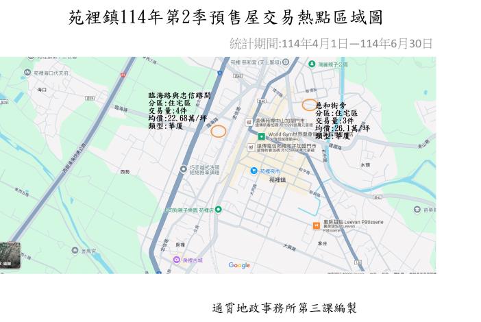 苑裡鎮114年第2季預售屋實價登錄預售屋交易熱點說明: