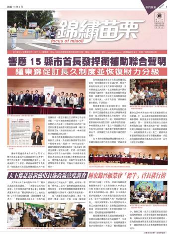 響應15 縣市首長發捍衛補助聯合聲明鍾東錦促訂長久制度並恢復財力分級